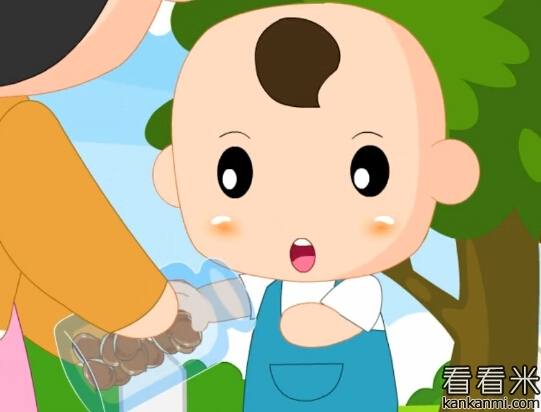 一位夫人在自家门前给一群小孩子分发栗子,栗子香甜可口,装在一个窄口瓶里,孩子们都很自觉的排队,从瓶子里抓出一下把栗子在别处剥壳[阅读]