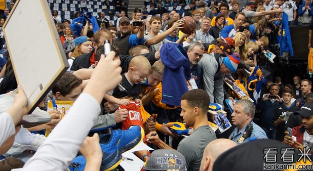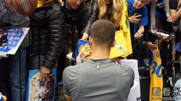 在热身结束之后,库里开始给在场球迷签起了名,这节奏,分分钟把客场变主场的趋势啊!
