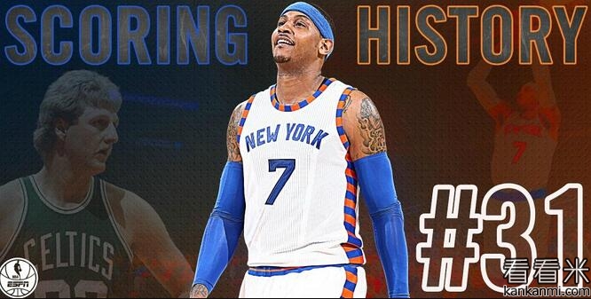 安东尼职业生涯总得分超伯德