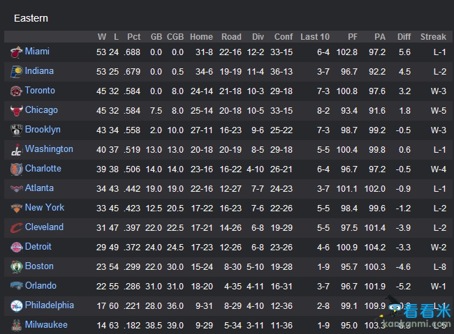 4.9NBA东部排名榜:热火被横扫优势仅半场 纽约老鹰缠斗