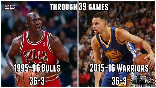 勇士前39场比赛战绩和当年72胜公牛相同