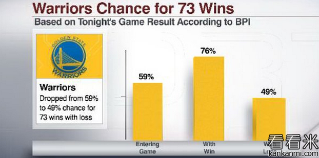 勇士拿到73胜概率降至49%