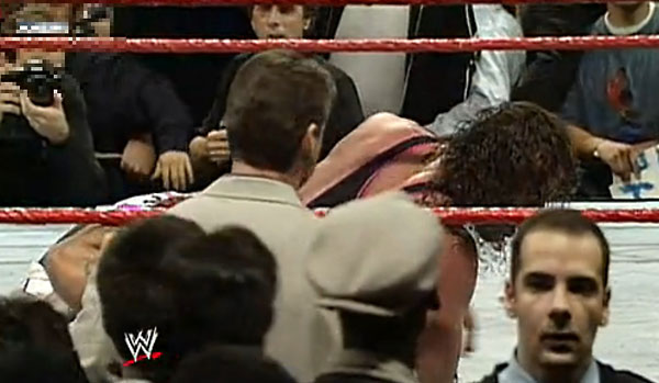 1997年的蒙特利尔事件发生后,Undertaker跑到后台找Vince McMahon理论,他要求Vince对Bret Hart道歉。想不到,10多年后,也是在蒙特利尔,历史重演了,而这次主角是他自己,不知道Undertaker的心情如何。虽然,这显然是剧情,但是,也传达给大家一个信息,WWE创作组在SmackDown下了很大功夫,难怪