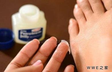 7.如果你的脚皮肤太厚,就会变硬,容易开裂。睡前在脚上涂凡士林,然后穿上袜子。第二天起床,你会发现脚的皮肤变得柔软,开裂的情况得到改善!