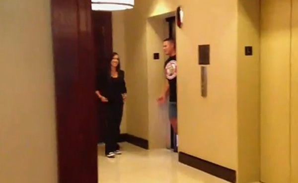 约翰·塞纳被指与AJ偷情,肥鸡(微琪·格雷罗)调用酒店监控,雇佣保安偷拍塞纳和AJ偷情之事。
