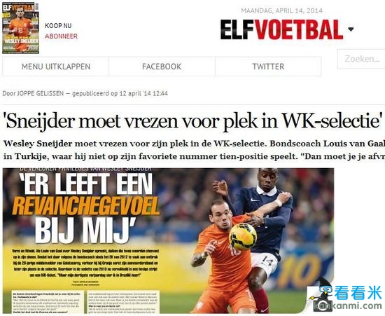 世界杯B组情报站:斯内德状态不好恐将无缘巴西世界杯