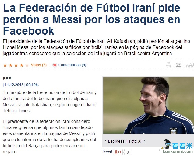 梅西遭伊朗球迷辱骂是烂铜块 伊朗足协主席道歉加送礼物