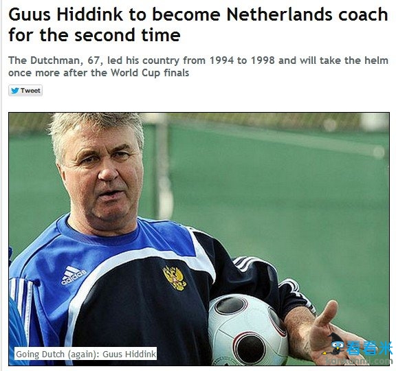 希丁克巴西世界杯后替范加尔 第2次担任荷兰主教练