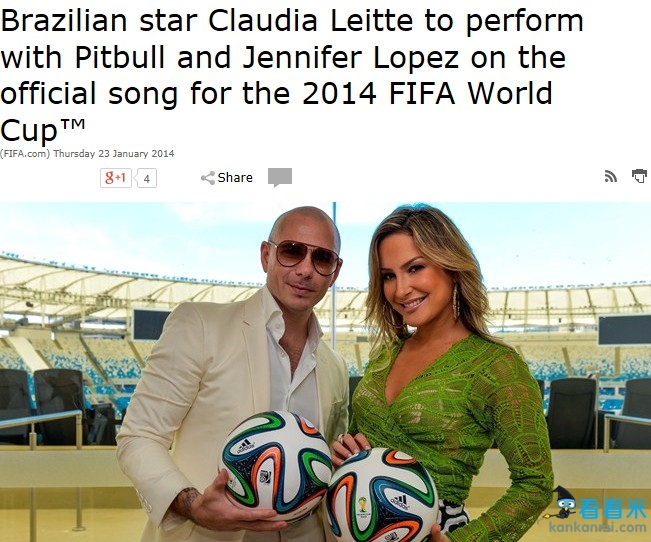 巴西世界杯官方主题曲公布 珍妮弗洛佩兹领衔三歌星献唱