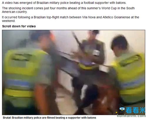 巴西警察挥警棍怒揍球迷 暴力事件为世界杯蒙上阴影
