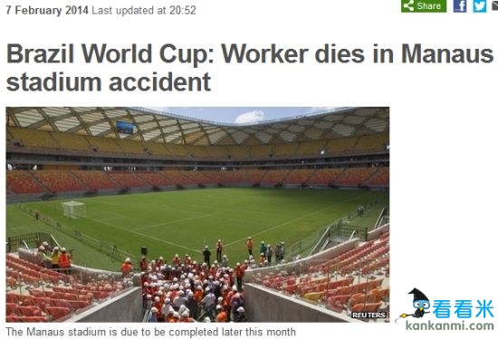 巴西世界杯场馆再现死亡事故 距开幕4个月组织仍混乱