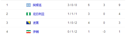 世界杯F组最终积分榜:阿根廷雄鹰晋级 波黑伊朗回家