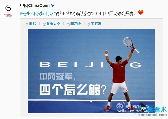 德约科维奇确认出战2014中网 北京福地冲击第五冠