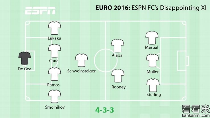 ESPN评欧洲杯黑榜,德赫亚鲁尼入榜