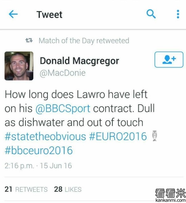 BBC比赛日节目转推球迷吐槽