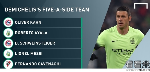 德米凯利斯评选最佳五人阵 梅西卡恩领衔
