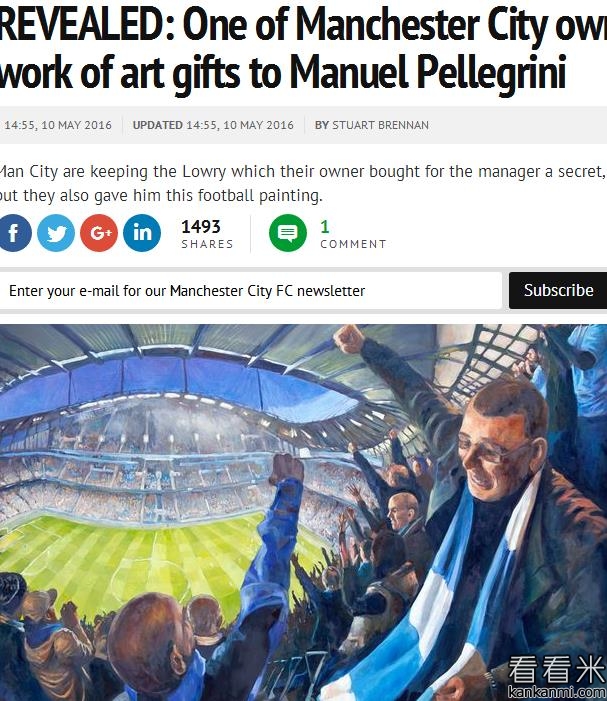 曼城队赠送佩帅离别礼物曝光