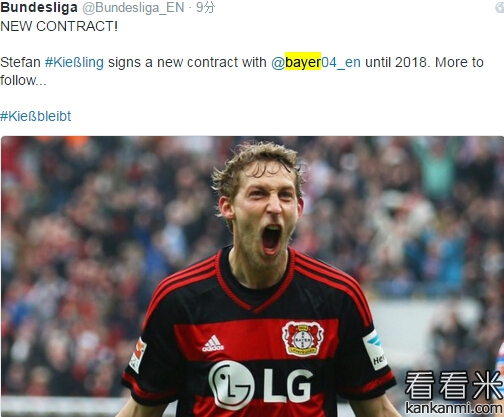 官方:基斯林和勒沃库森续约至2018