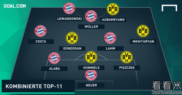 拜仁多特联合最佳阵:奥巴梅杨搭档穆勒莱万