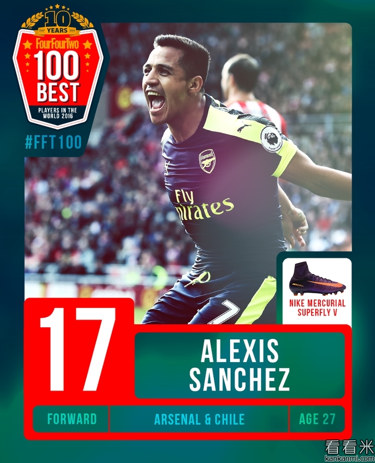 近日,FourFourTwo.com进行了年度百佳球员盘点。今儿咱们就先来看看排在20到11位的球员。