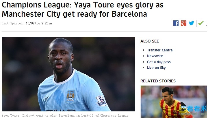亚亚-图雷不愿太早遇上巴萨 佩德罗:曼城是最强对手