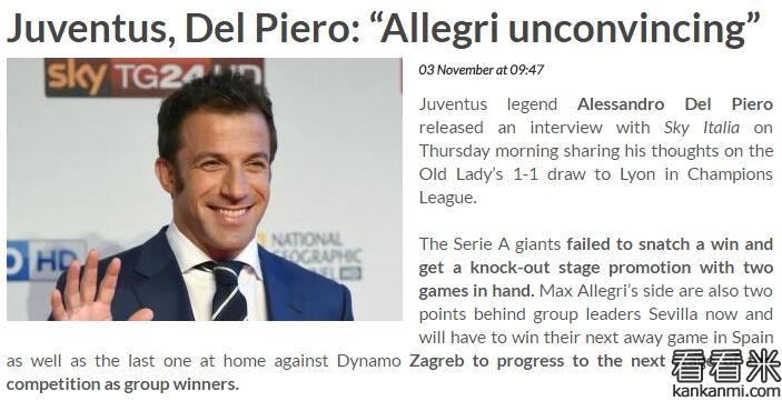 皮耶罗:小组第二或给尤文带来麻烦