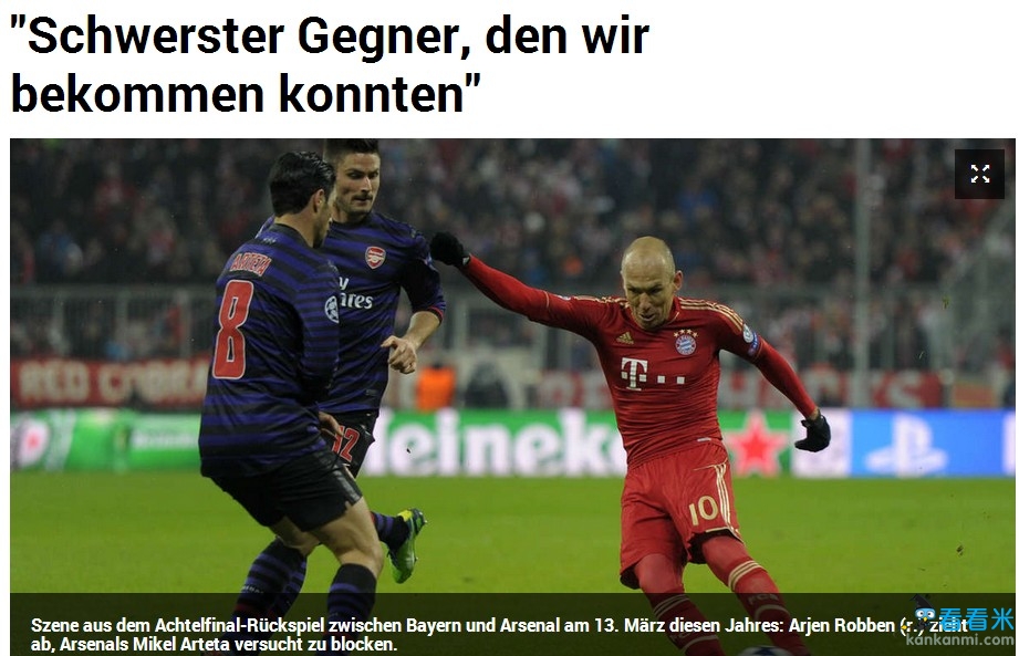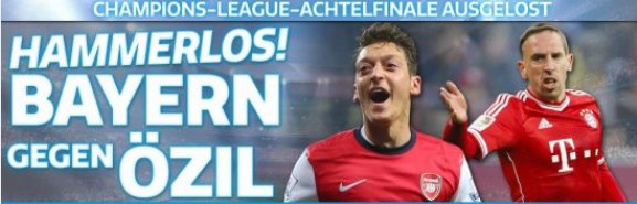 德媒聚焦欧冠抽签拜仁再遇阿森纳 枪手多厄齐尔也没用