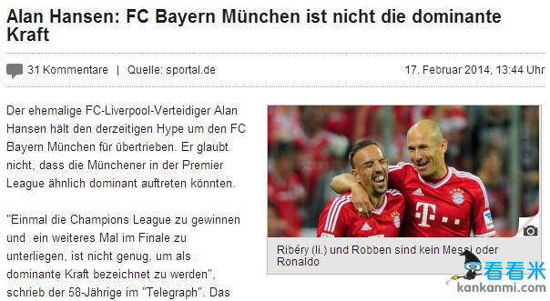 拜仁慕尼黑欧冠挑战阿森纳 里贝里不做球员做解说嘉宾