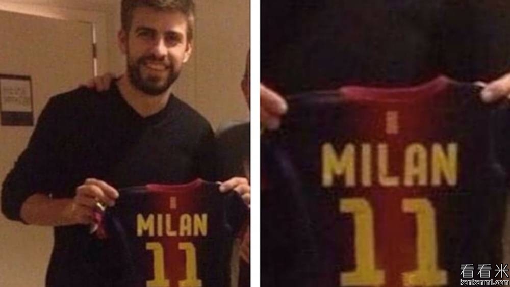 皇马夺冠 皮克儿子米兰11号球衣照在网上热传