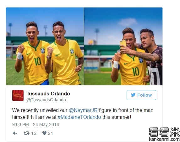内马尔蜡像问世 巴西人合影留念