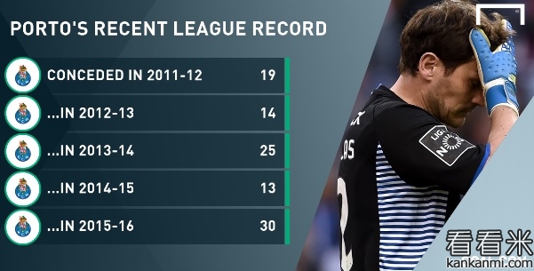卡西尴尬了!波尔图本赛季丢球15年来新高