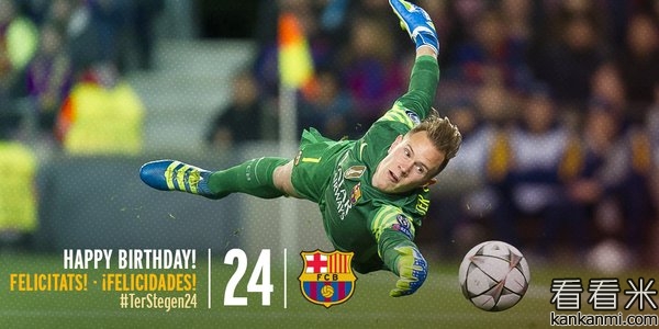 巴萨官方:祝特尔施特根24岁生日快乐