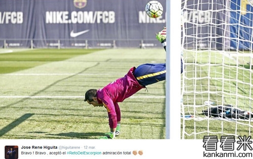 布拉沃尝试蝎子摆尾扑救 伊基塔点赞