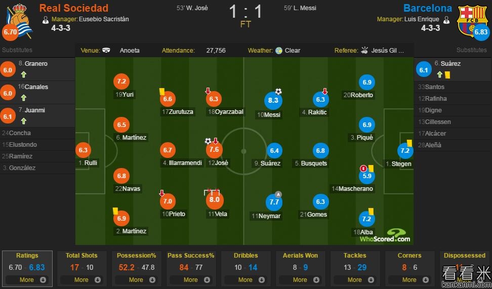 早报-巴萨1-1客平皇社 曼联1-1遭遇4连平