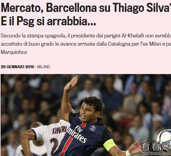 巴萨再次打探弟媳和马尔基尼奥斯 惹巴黎主席愤怒