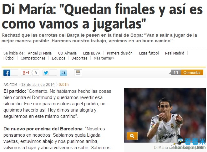 迪马利亚满意自己破门助皇马大胜 盼以最佳状态战巴萨