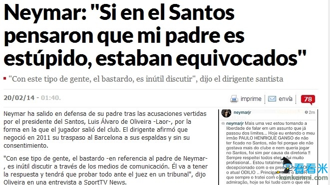 桑托斯老板炮轰内马尔父亲卑鄙 巴西天王含泪鸣不平