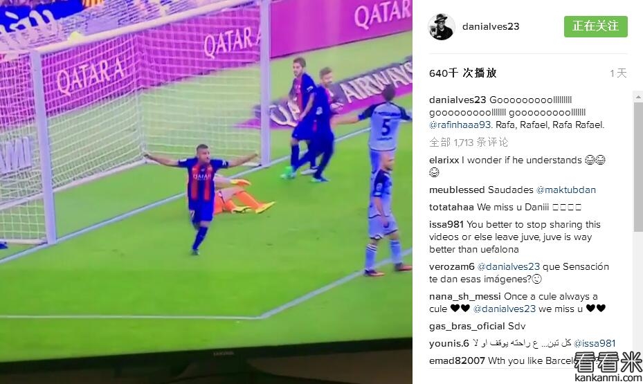 阿尔维斯推特晒视频,激动庆祝巴萨进球