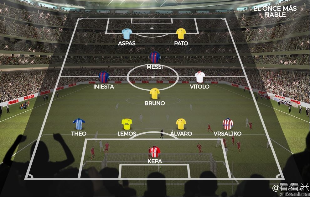 马卡报评西甲第16轮最佳阵容:梅西、小白入选