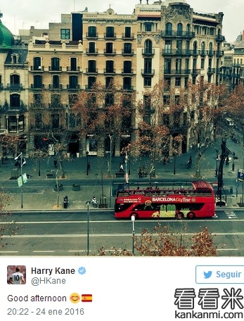 热刺前锋凯恩发推现身巴塞罗那,引人遐想