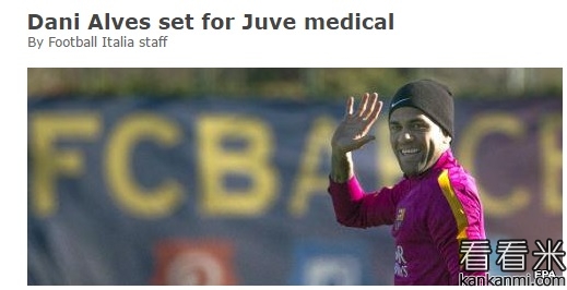意媒:阿尔维斯即将接受尤文体检