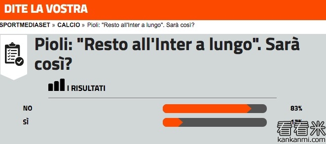 意媒调查:超8成球迷认为皮奥利在国米不会长久