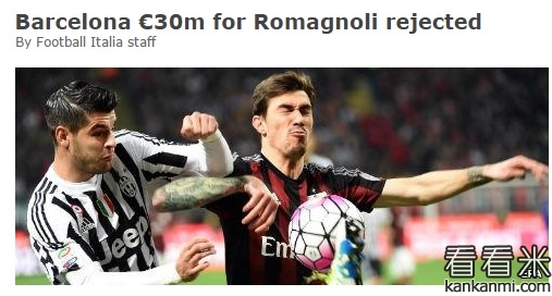 意媒:巴萨三千万报价罗马尼奥利遭拒
