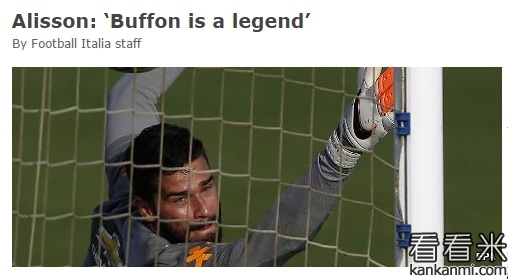 罗马新援:自豪加入球队 布冯是传奇门将