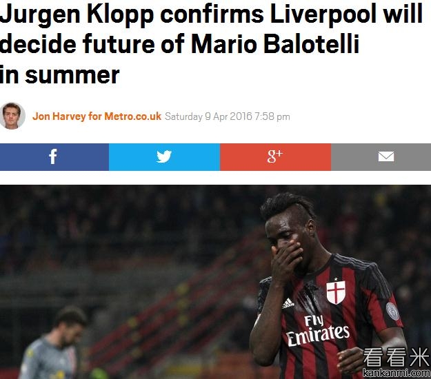 克洛普:今夏会决定巴洛特利的未来