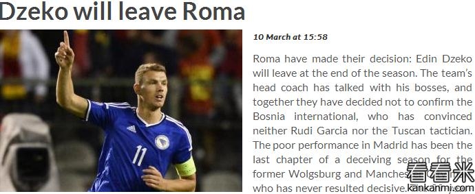 意媒:哲科赛季末将离开罗马