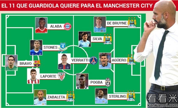 坐拥两亿转会资金 西媒预测瓜帅心仪曼城阵容