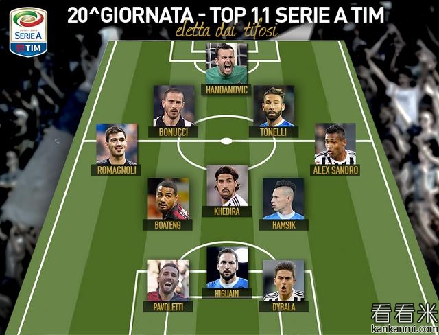 意甲官网评第20轮最佳阵容 尤文四将入选