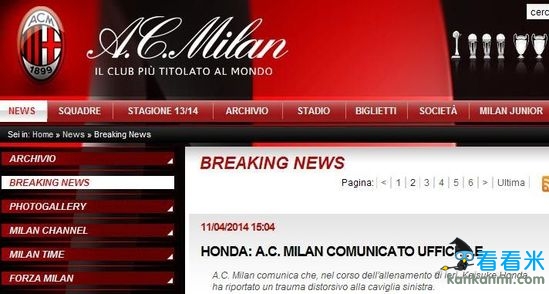 米兰VS卡塔尼亚前瞻:本田圭佑伤缺 红黑军盼四连胜
