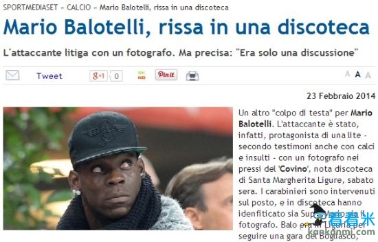 夜店争斗辱骂脚踢记者 米兰赢球上头条的又是巴洛特利